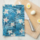 Blaues nahtloses Muster der Palmblätter mit Frangipani-Blumen. © und ® Bigstock® - alle Rechte vorbehalten.