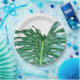 Palmblätterblättern, tropisches Blattwerk, Regenwa Pappteller