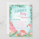 Die Einladungen sind mit Blätter aus Palmen mit rosa Flamingos und Eis auf blauem Hintergrund gestaltet. Diese Einladung ist einfach an Ihre Veranstaltung angepasst, indem Sie einfach Ihre Details hinzufügen.