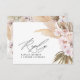 Pampas Gras, Palmenblätter, Blätter und orchid Blume natürliche moderne rustikale Hochzeitseinladung Details Karte. Schöner, eleganter Text und natürliche, moderne Blattgrasflächen. Girly ruhige Wüste rosa Design. Ideal Frühling, Sommer, Herbst, Herbst oder Winter Hochzeit Thema. Teil einer modernen Hochzeitskollektion.