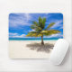 Dieses Foto kennzeichnet eine Palme, die allein auf einem weißen sandigen Strand stehend ist.