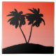 Keramik Kacheln in einer schwarzen Silhouette von Palmen gegen einen orangefarbenen Hintergrund