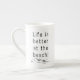 Palmen und Flussuferläufer-Strand-Leben-Knochen-China-Tasse. Schöne Grafik, zum Ihres Küstenlebensstils zu erhöhen.