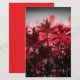 Schönes Kamindesign, eine Collage von hellen und tiefen roten Palmen in tropischer Sommerhitze, mit einem grauen Himmel.