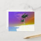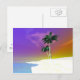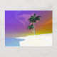 Eine Postkarte mit meinem originalen Kunstwerk einer tropischen Inselszene mit einem weißen Sandstrand und Palmen.