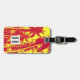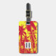 Palm Tree Design mit Monogram. Rot und Gelb. Muster von Blätter, tropische Palmen.