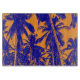 Kühne Dekoration von Palmen in einem posterisierten Stil. Blau mit orangefarbenem Hintergrund.