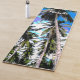 Yoga Floor Matte, Fußbodenmatte für Yogakurse. Tropische Palmen in einem farbenfrohen Design. Fügen Sie einen Namen Ihrer Wahl hinzu.