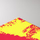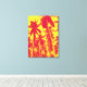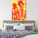 Ein lebendiges Bild von Palmen Bäumen in einem Silhouette-Stil, der in Rot und Gelb ist.