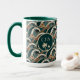 Diese polynesische inspirierte Tasse weist ein Muster von Palmen und Wellen in Grün auf - mit einem Hauch von aquamarin, braun, braun und cremig cremig cremefarben. Ihre Monogramm-Initialen erscheinen in einem dunkelgrünen Kreis, zusammen mit Palmen, auf jeder Seite der Tasse. Wenn Sie oder Ihre Empfänger Lieben am Strand, wäre diese Tasse eine großartige Möglichkeit, um Ihre morgendliche Java oder entspannen mit Nachmittagstee. Geben Sie die Initialen Ihres Empfängers oder Ihrer Person im Abschnitt Personalize ein.