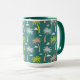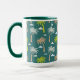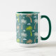 Ein Retro-Muster aus weißen, grünen und hellbraunen Palmen aus der Mitte des Jahrhunderts vor einem dunkleren grünen Hintergrund.