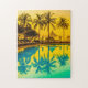 Puzzle mit Palmen und Pool bei Sonnenuntergang. Zeichnen Sie es, wenn Sie fertig sind, oder packen Sie es auf, um wieder zu arbeiten. Wählen Sie aus den verschiedenen verfügbaren Größen, um eine größere oder kleinere Größe oder mehrere Stücke auszuwählen.