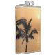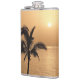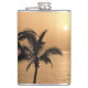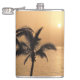 Silhouetten von Palmen gegen einen Sonnenuntergang.