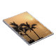 Silhouetten von Palmen gegen einen Sonnenuntergang.