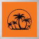 Vector Illustration eines tropischen Sonnenuntergangs und Palmen auf einem kleinen Ferieninselparadies.