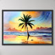 Die ruhige Schönheit einer Palme in einem bezaubernden Bild erfassen. Dieses Kunstwerk zeigt die Eleganz einer einsamen Palme vor dem Hintergrund eines atemberaubenden Sonnenuntergangs am Strand. Da die Wellen sanft den Sandstrand küssen, schaffen das Meer und der feuchte Sand eine ruhige Atmosphäre. Die Szene strahlt ein Gefühl friedlicher Einsamkeit aus und lädt Sie ein, sich in der Schönheit der Natur zu entspannen. Kunstmalerei für Ihre Wohngestaltung. Sie können mit Rahmen und Kunstdruckpapier kaufen. Original Datei Bildgröße 40'x27' inch (300 dpi).