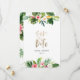 Palmenblatt und Goldschrift mit Blütenblättern Save The Date