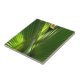 Auf dieser kleinen Keramik Tile - Grün, Naturgrün, Grüntöne in der Natur, Formen in Schatten und Sonnenlicht - das sind die Elemente, die dieses Originalbild von MaeFlowers aus einer Säge Palmetto Pflanze ausmachen. Die akkordionförmigen Blätter sind dunkelgrün im Schatten und ein hellgelbes Grün, wo das Sonnenlicht sie auffängt. Oben im Foto kurbelt ein trockenes braunes Blatt eines anderen Baumes zum Betrachter, das sehr dreidimensional aussieht. Die Nahansicht verleiht dem Foto einen abstrakten Look.