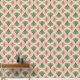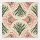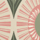 Eine kühne, sonnige Mischung aus Palmen-Blätter und Retro-Sonnen in sanftem Rosa, Grün und Orange auf einem cremefarbenen Hintergrund - lustig, hell und tropisch.