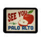 Ein charmanter Palo Alto California Reisewall Kühlschrank Magnet mit einem schönen roten Apfel, zusammen mit lustigen Retro-Text, der sagt: "See you in Palo Alto"