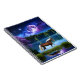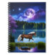 Schönes Palomino Belgisches Pferd, das unter Vollmond durch einen See spaziert und Sternnebel gefüllt Himmel AI Generated Art von minx267
