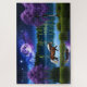 Palomino Belgisches Pferd unter einem Lila Sternen Puzzle