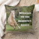 Verlass eines oder mehrere dieser bequemen Kissen auf deinem Gästebett, auf dem Gästebett oder im Liegestuhl, um die Besucher auf deinem Zuhause willkommen zu heißen. Ein Palominopferd ziert die Vorderseite des Kopfkissens und der Willkommenstext kann individuell auf Ihre Wünsche abgestimmt werden. Der Rücken ist neutral braun, kann aber auch gewechselt werden.