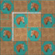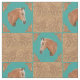 Western-Dekoration, Nähen oder Handwerk mit einem Palominopferd mit bedruckten Lederecken, braunem Lederprint und türkisfarbenen Druckblöcken.