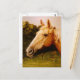Ein Ölgemälde auf der Leinwand eines Palominopferdes mit weißem Blaze steht als schöne Postkarte zur Verfügung.