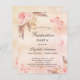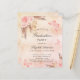Eine Rose Gold, rot rosa rustikale Imitate metallisch aussehen Hintergrund. Die Einrichtung besteht aus Rose-Gold und rosa Blumen, Rose, Pampas-Gras, Schmetterlingen und einem goldenen Kreuz. Personalisieren und fügen Sie einen Namen und die Details.