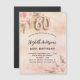 Eine Rose Gold, rot rosa rustikale Imitate metallisch aussehen Hintergrund. Die Einrichtung ist mit Rose-Gold und rosa Blumen, Rose, Pampas-Gras dekoriert. Personalisieren und fügen Sie einen Namen und Party-Details hinzu. Nummer 60 wird mit einem Schriftart im Ballonstil geschrieben.
