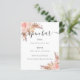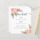 Weißer Hintergrund. Die Einrichtung ist mit Rose-Gold und rosa Blumen, Rose und Pampas-Gras dekoriert. Mit dem Text: Bar öffnen. Personalisieren Sie Ihr Menü und fügen Sie Ihr Bar hinzu.