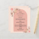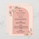 Eine elegante bohemianische Hochzeitskarte. Personalisieren und fügen Sie Ihre Namen, Datum und das Hochzeitsmenü. Dekoriert mit rosafarbenen Blumen und Pampas-Gras. Zurück: Rose Gold Hintergrund.