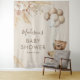 Bohemische Bärendusche mit hellbraunem Hintergrund, Vintagem Babybär, Ballons, rustikalem Bohampas-Gras und Blumen, sowie eine moderne Textvorlage, die leicht zu personalisieren ist.
