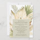 Boho Wüstenbukett nach dem Hochzeitsessen Party Einladung mit handlackierten Aquarellpalmen, Pampas-Gras, weißen Orchideen und getrockneten Blätter in natürlichen Erdtönen auf weißem Hintergrund. Anpassen Sie einfach den Hintergrund und die Vordergrundfarben, den Schriftart-Stil, das Layout und fügen Sie Ihr Lieblings-Hochzeit-Foto auf der Rückseite. Koordination von Einladungen und Zubehör im Lager.