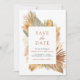 Erleben Sie Ihre Gäste mit dieser eleganten Save the Date-Karte mit wunderschönen rustikalen Palmen-Blätter und Pampas-Gras mit moderner Typografie. Fügen Sie einfach Ihre Veranstaltungsdetails zu dieser leicht zu bedienenden Vorlage hinzu, um sie zu einer einzigartigen Save the Date-Karte zu machen.
