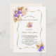 Elegantes Kartendesign mit Aquarellfarben lila Lavendelorchideen, Pampas Gras, getrocknete Palmen Blätter, Lunaria, Imitat Goldrahmen, Teekanne mit Blume, auf weißem Hintergrund. Auf der Rückseite Blumenrahmen und Initialen. Verwenden Sie das Tool Personalisieren, um Ihre Informationen hinzuzufügen. Für passende Artikel besuchen Sie bitte meine Pampas Grass Floral Collection.