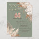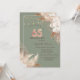 A modern, chic and glamorous invitation with elegant string lights, and boho flowers on sage green background.