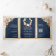 Pampas Neutral Beige Earthy Floral Navy Wedding Dreifach Gefaltete Einladung
