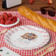 Pancakes & Pacifiers Pink Gingham Boy Baby Shower Pappteller