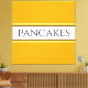 Dieses lustige Design beinhaltet Text in einem breiten, weißen Mittelstreifen, der mit schwarz-hellgelben Pinstreifen gegen helle, goldgelbe Hintergrundstreifen markiert ist. Der PANCAKES-Text kann personalisiert sein.