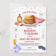 Mit dieser Pancakes und Pajama Party Einladung Vorlage heben und glänzen und die Güte stapeln! Ein Stapel flauschiger Pfannkuchen auf einem Teller wird mit Sirup getrunken, gewartet für Ihre Gäste, sich zu gönnen. Das Frühstück wird in Büffetform serviert, darunter Eier, eine Flasche Ahornsirup, ein Glas Orangensaft und Milch sowie Obst, um die Pfannkuchen zu ergänzen. Hausschuhe und eine Augenmaske ergänzen das morgendliche Fest mit köstlichen Leckereien, Lachern und den besten Geburtstagsvibes! Die Rückseite ist eine solide Farbe, die in jede gewünschte Farbe geändert werden kann. Verfügbar mit passenden Produkten.