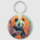 Panda am Sonnenuntergang mit Blume, Blumen Schlüsselanhänger