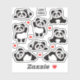 Fügen Sie Ihrer Aufkleberkollektion 8 verschiedene niedliche Pandas-Stile hinzu, mit kleinen roten Herzen dazwischen.