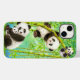 Panda Tiere Niedlich Cover Phone Case Für Apple iPhone 14 Plus Fall Die Mutter Panda ist eine kleine Familie aus drei sehr schönen Hubs. Der kleinste Sack ist in den Armen der Mutter, während die anderen beiden auf der Bambusmatte spielen. Es hat einen sehr schönen grünen Hintergrund.