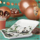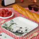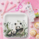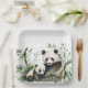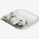 Aquarellfarbener niedlicher Panda-Bär in Bambus-Blätter mit einem Krug auf weißem Hintergrund.