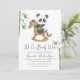 Wir können frühzeitig auf die Einladung der Babydusche warten. Niedlicher Aquarellbär auf Spielpferd und Bambus. Matching-Elemente verfügbar.