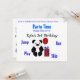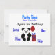 Ein Panda mit niedlicher schwarz-weißer Oberfläche, der einen roten Ballon hält. Ein Geburtstagsgeschenk neben ihm. Viele lustige Worte, um eine tolle Geburtstagsfeier zu beschreiben! Passen Sie Ihre Party-Informationen nach Ihren Wünschen an.