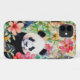 Coole Aquarelllandschaft Malerei Panda Bären in farbenfrohen Blumengarten.