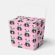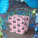 Gastgeschenk-Box in Rosa in einem Takt-Stil mit einem niedlichen Cartoon Panda-Bärenprint gezeigt. Passen Sie dieses Element an und fügen Sie Ihren eigenen Text hinzu oder kaufen Sie, wie es ist, und fügen Sie ein hübsches Band.